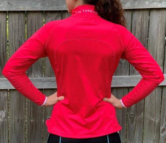 The jacket comes in this awesome bright pink color and drivers could definitely see me. Yet while the jacket’s color is bright during the day, reflective elements (besides the logo at the neck) were missing from the design and would be helpful in low-light conditions. Also, I’d suggest adding a rear zipper or pouch pocket for the bulkier items you don’t want moving around in the front pockets when pedaling.