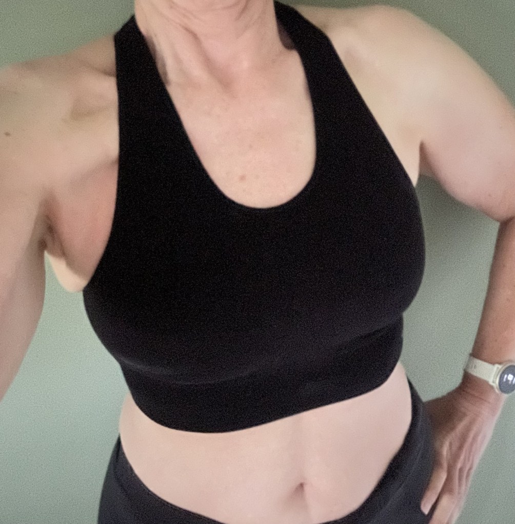 Initially, I found the bra challenging to put on and take off due to its snug fit. However, after a few wearings and washings, the four-way stretch knit fabric had a little more give. With this said, if you have flexibility issues and have difficulty with other racerback bras, this might not be the one for you.