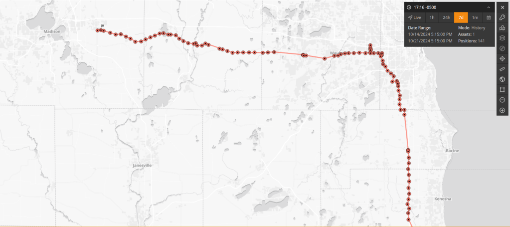 I had the perfect opportunity to try the SPOT GEN4 during a two-day adventure from home to Madison, Wisconsin. This trip allowed me to share my exact location and progress with family and friends using the device’s mapping feature.