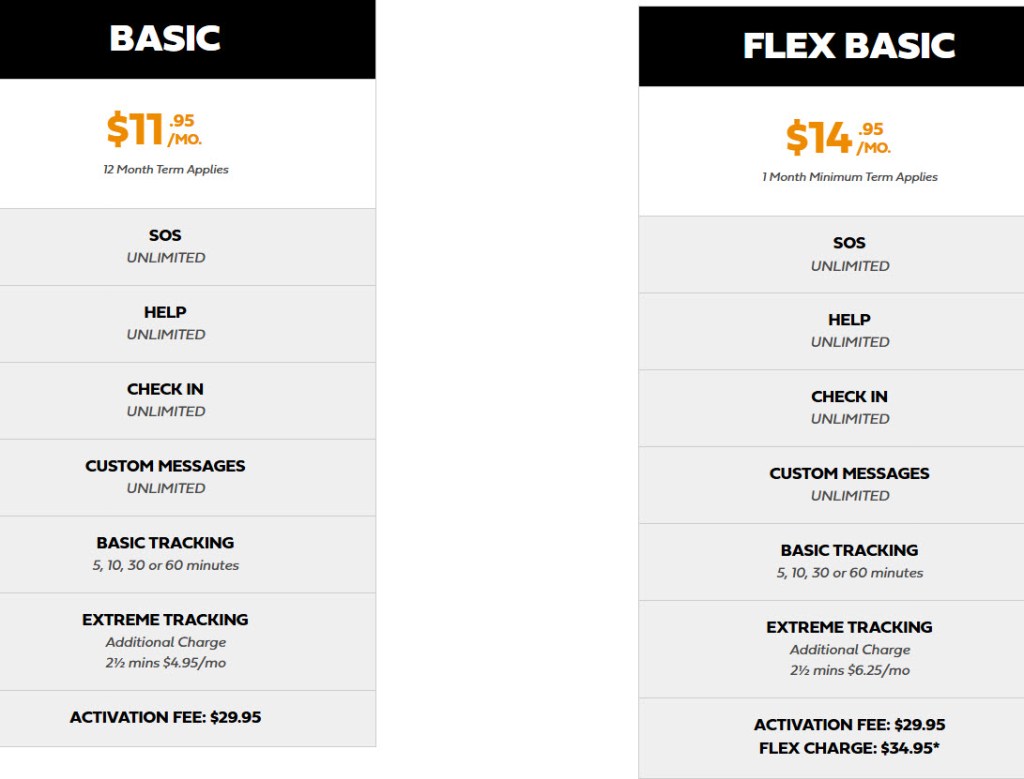 The basic plan tracks at 5-minute intervals, but upgrading to Extreme Tracking allows you to choose your tracking rate of 2½, 5, 10, 30, or 60 minutes. Upgrading to this feature is $4.95/month, $59.40/year, or $6.25/month when using the Flex plan. Using a more frequent tracking rate reduces the battery life of your SPOT GEN4.