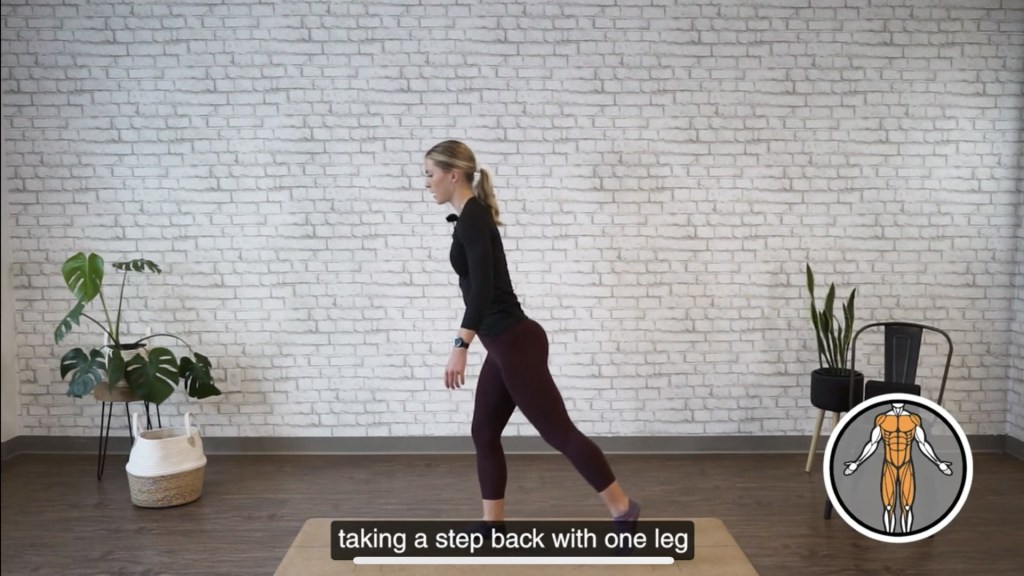 The stretching, injury prevention, and foam roller sessions usually last 15 minutes, while the strength training workouts are 30-40 minutes, and the Pilates is 60 minutes. The trainer provides verbal and visual instructions in the videos, often explaining the reason for each move and the muscles targeted. The visual insert of an anatomical figure is important because I can focus on using that muscle(s).
