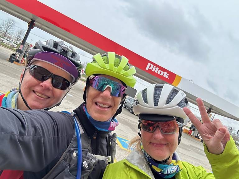 At exactly 8:15 am, in cloudy, blustery weather, we all hit start on our GPS and pedaled off in different directions. We rode with another group for about five miles before they split off on their route. Dawn, Hollie, and I headed to Morris, Illinois, directly south of the start.
