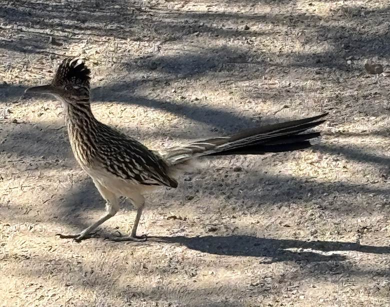 I took a four-mile walk on The Loop and was rewarded with sightings of a red-tailed hawk with its lunch, roadrunners doing their cartoon-character sprint, and some seriously impressive big cat paw prints. There were also a lot of cactus flowers blooming due to the rains earlier in the month.