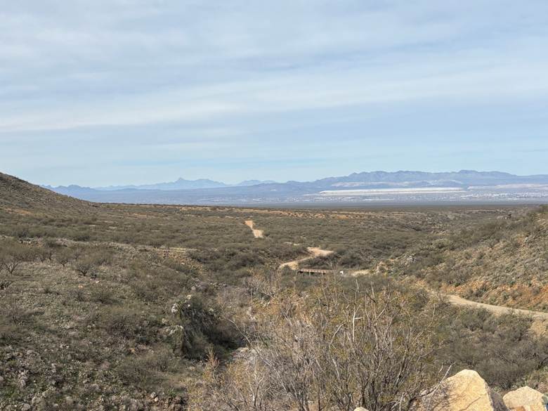 There were two distance options: the full 52.1-mile lollipop route with an 11.5-mile initial climb, or the 42-mile option with a shuttle up to Boomshakalaka. Part of the route comes so close to the Mexican border that my phone cheerfully welcomed me to another country.