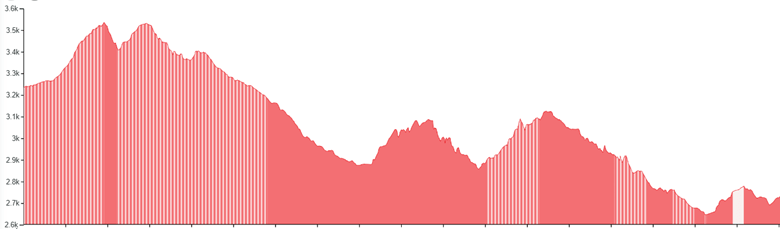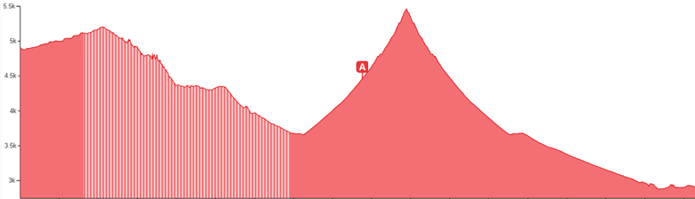 My original goal: beat my 2024 time. My knee’s goal: absolutely not. So I adjusted, setting smaller milestones. First goal: Bug Springs at mile 7.5, where the van waited with snacks. Spinning in an easy gear, slow and steady, I made it. Quick refuel, then on to Windy Point at mile 14, where the second van was stationed.